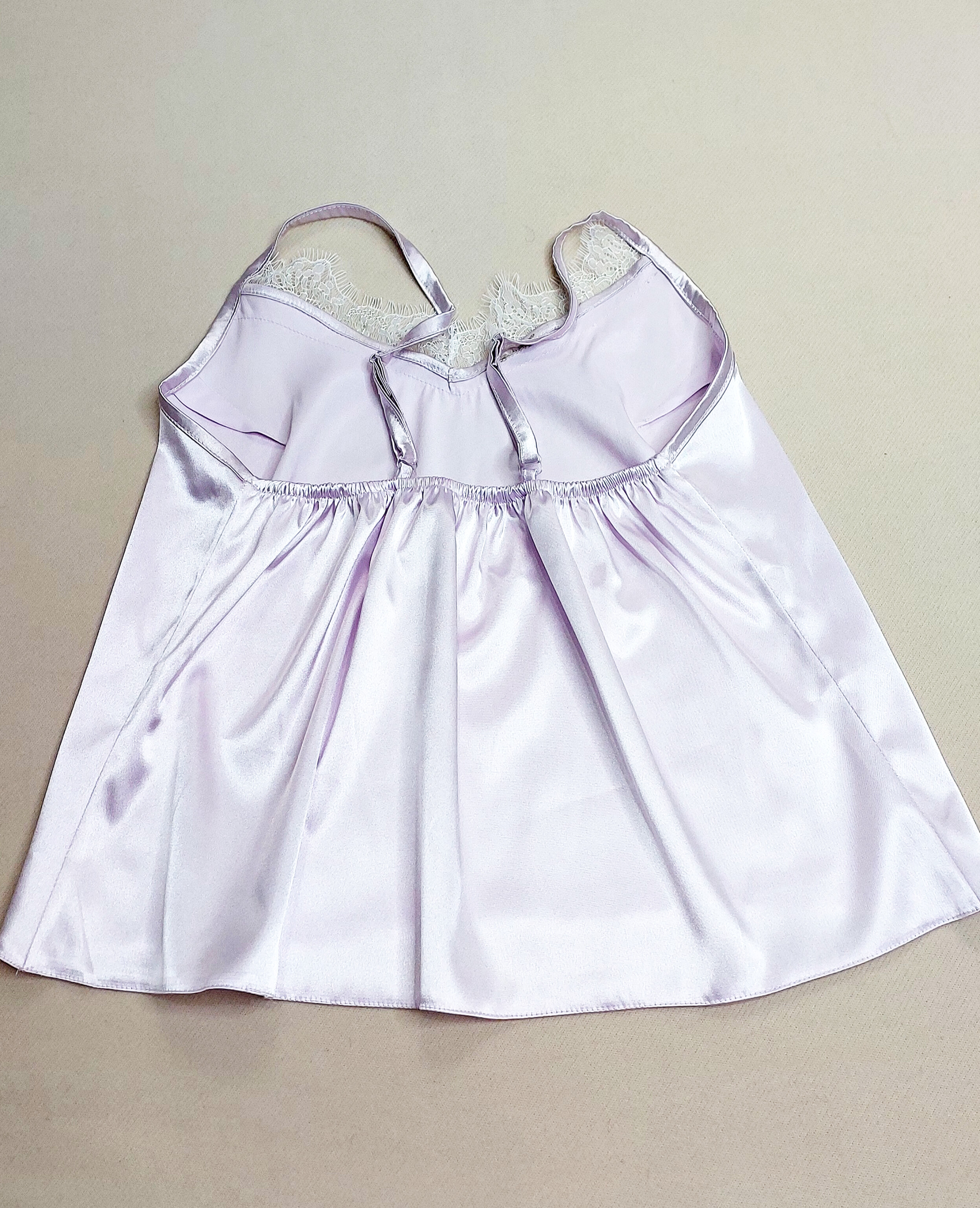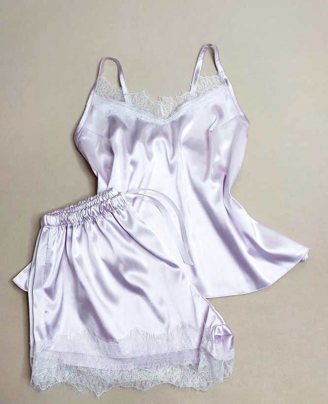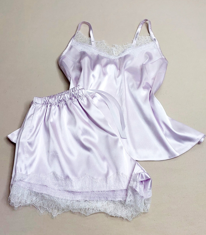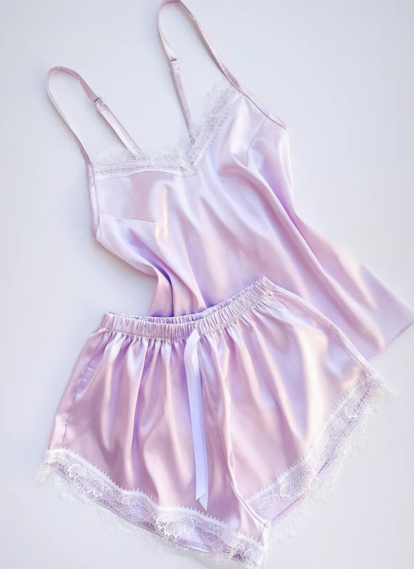 ست تاپ شورتک ساتن الیکس فوق العاده لطیفه مخصوص خواب و راحتی خونگی رنگ بسیار ملیح و جذابی داره تک رنگ یاسی سرشانه تاپ به اندازه دلخواه قابل تنظیم هست